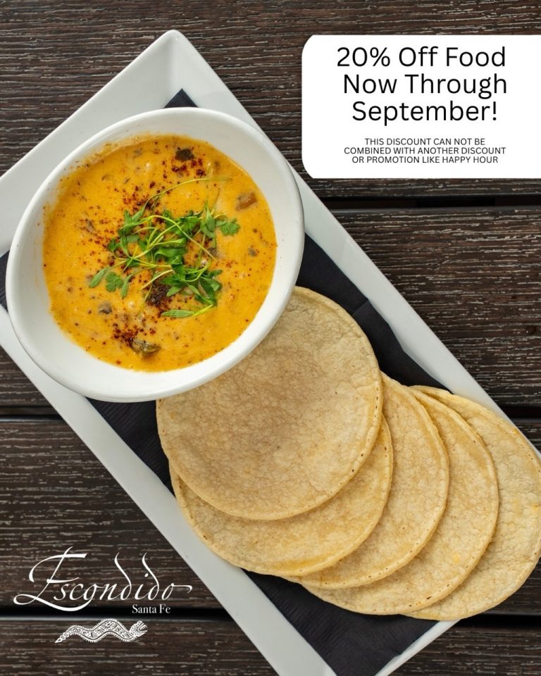 Please show this image when you dine with us and enjoy 20% off your food, now through September, as many times as you visit!