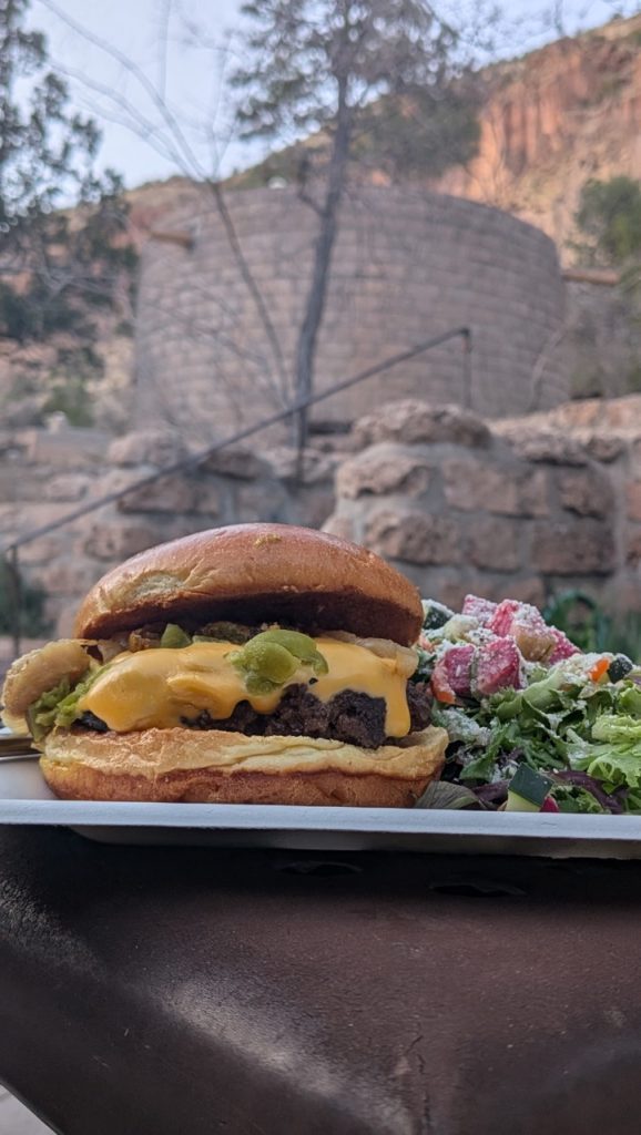 So there was this rumor in my foodies groups about a cafe at Bandelier National Monument that serves really great (worth the drive) burgers and other items. The cafe is called Sirphey Cafe. It was time to check it out.