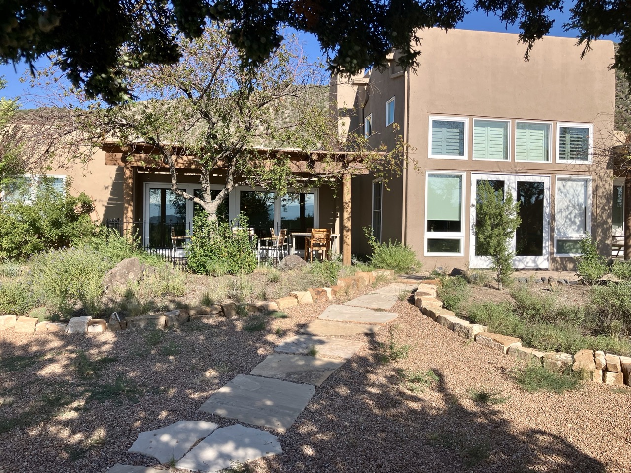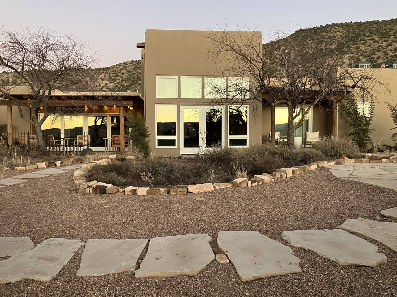 45 minutes north of Santa Fe, NOSA is inside a private, gated community nestled in the Ojo Caliente River Valley. Settled in the mountain basin, the grounds are beautifully curated with an abundance of flourishing trees and colorful native plants in perfect harmony with the natural landscape. Quiet and serene, surrounded by panoramic views of the horizon and with acres of land to roam freely, the property is a wonderland of exploration and discovery.