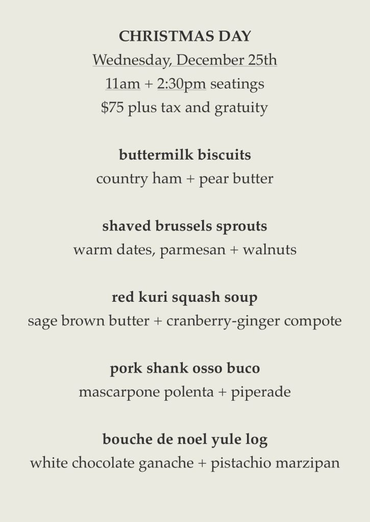 Christmas Day: Dec 25 (two seatings)