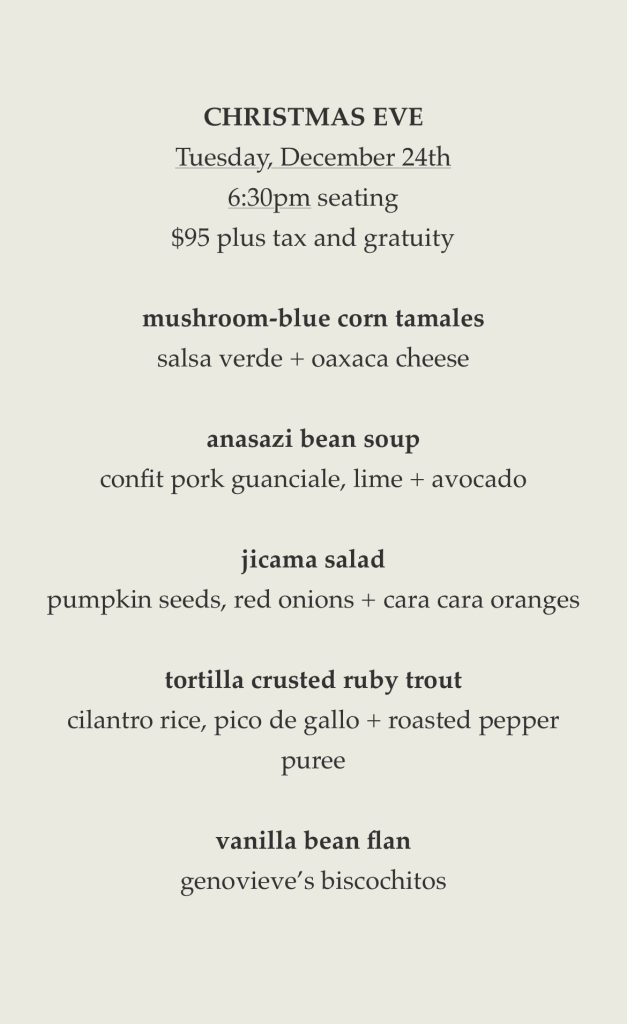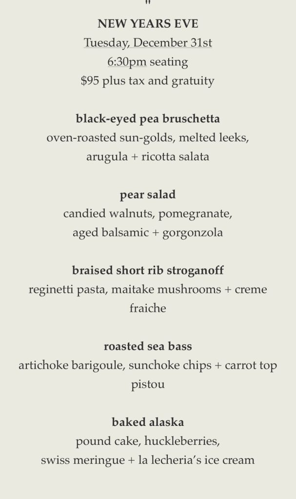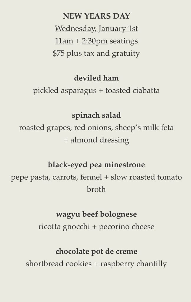 New Year’s Day: Jan 1 (two seatings)