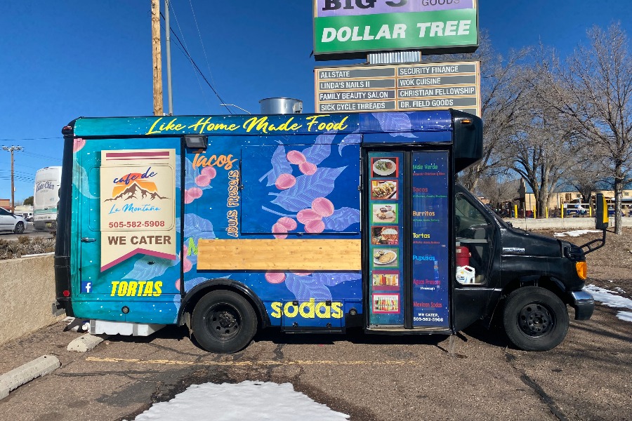 Food truck on Cerrillos Road serving Tacos, Burritos, Pupusas, and other Mexican-influenced foods.