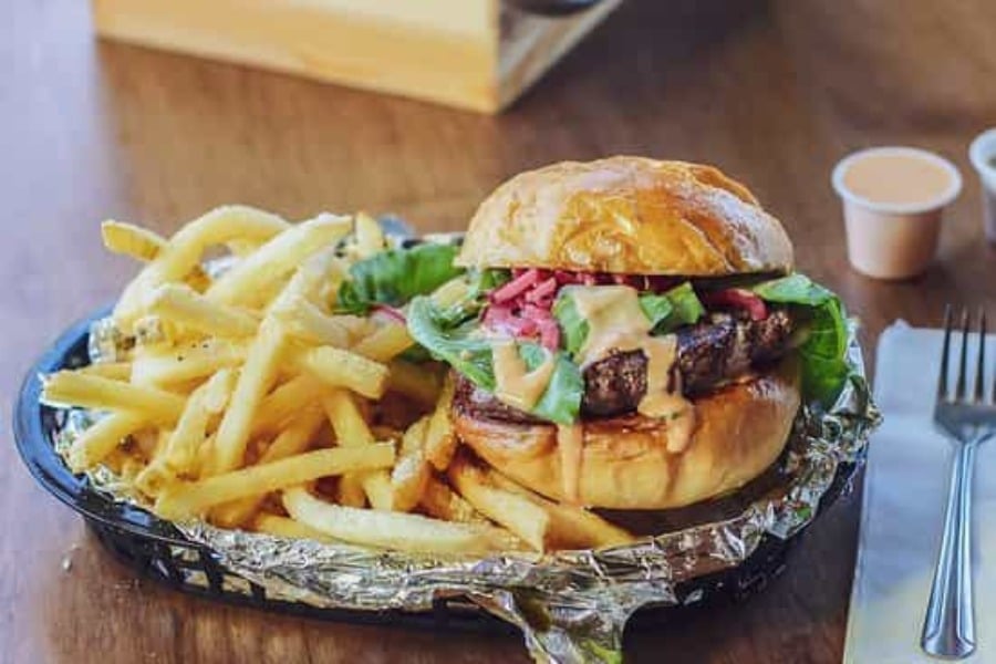 Gourmet burger spot serving meat & veggie patties, plus draft beers in a comfy setting with a patio.